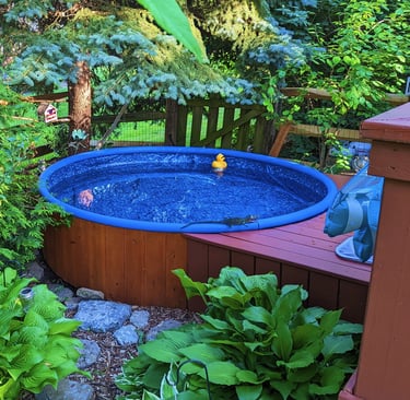 We really love our adult kiddie pool. Our backyard "oasis" has stepped changed since we added our industrial-sized soup pot. The hot tub - a repurposed livestock trough, heated by a propane camping water heater. Relaxation. A few errant pine needles floating on the surface, adds a rustic touch. The quiet gurgle of the filtration system and tunes pouring from our chillantix adventure boombox provide a soothing backdrop to the chirping crickets. It can be as simple or fancy as you desire. Whatever you choose, the adult kiddie pool offers a perfect, secluded escape, a steamy haven under a canopy of stars.
