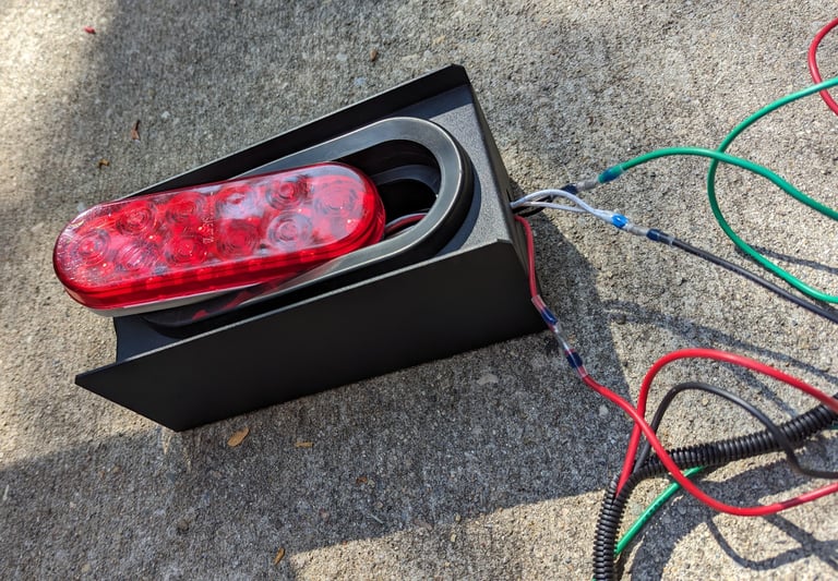 We tried bolting the plate to the door of the box, and bought a mini solar light to illuminate it at night. It was twonky but functional. But, this didn't fix the tail light issue. So, what were we to do?