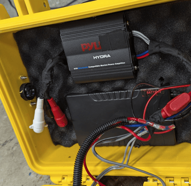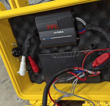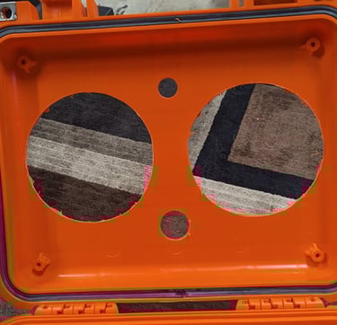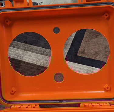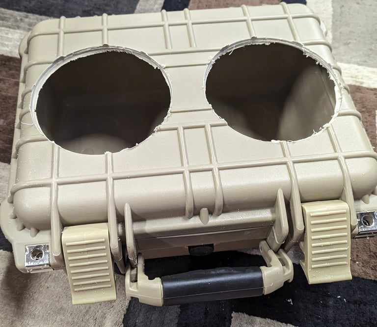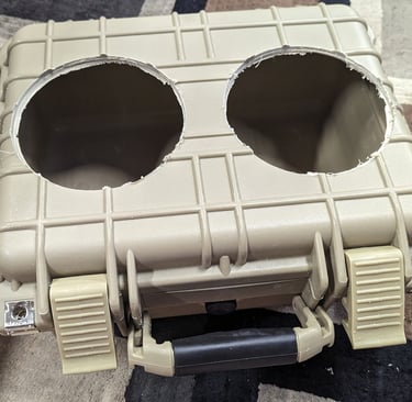 Carefully plan out the best locations for the blowholes and any external power buttons, USB ports, etc. Remember to check all internal clearance so you don't drill into battery / amp + the lid will still close!