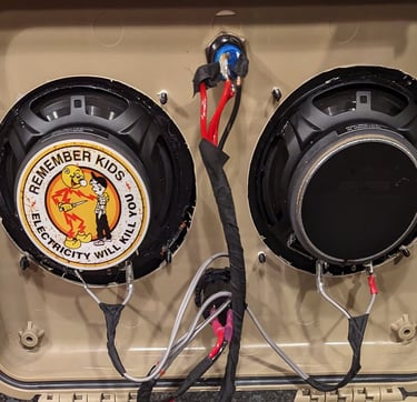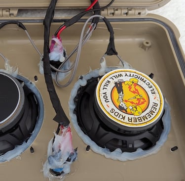 WWCD Bonus Reco: When you're sealing up all of the parts with the GE caulk - cover the speaker to wire connections with a dab. This holds them nice and tights and prevents any movement in transit or as you open / close the case. Smooth it all out to make it look better than the mess we made here...